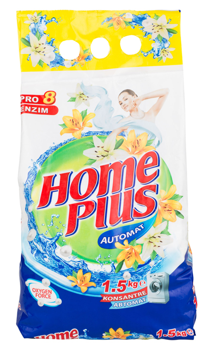 Home Plus Toz Deterjan; yeni geliştirilmiş formülüyle çamaşırlarınıza hızlıca nüfuz eder ve etkin bir şekilde temizlenmesini sağlarken, ilk günkü beyazlığını korumasına yardımcı olur. Derinlemesine nüfuz eden parfümü uzun süre ferahlık verir.